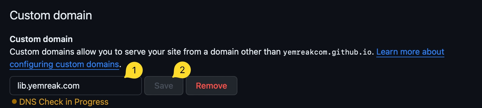 Settings⇒Pages⇒Custom Domainkısmına domain bilginizi girin:Apex domain için