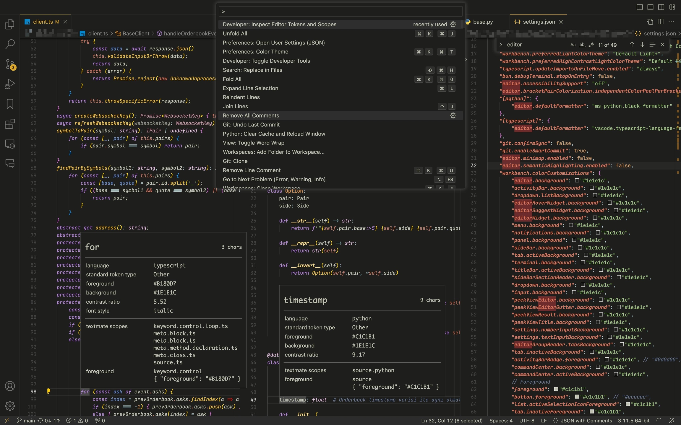 Neurodesign prensiplerine uygun olarak tasarlanmış, göz yormayan ve dikkati koruyan Typescript ve Python odaklı VS Code Theme