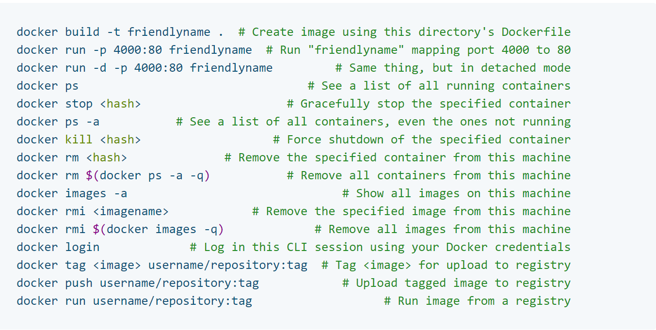 Docker Cheet Sheats'e bakmanda fayda var.